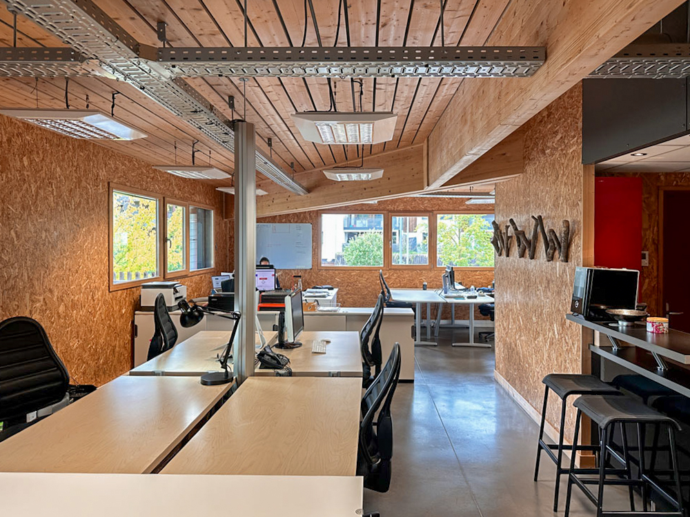 Le bâtiment est en bois éco-conçu avec vue sur Belledonne, Chartreuse et le Vercors.